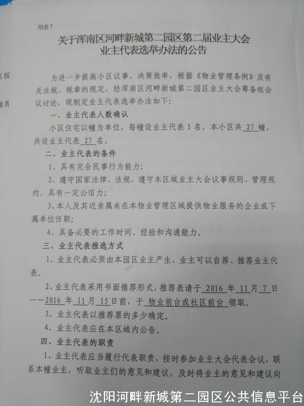 关于浑南河畔新城第二园区第二届业主大会业主代表选举办法的公告
